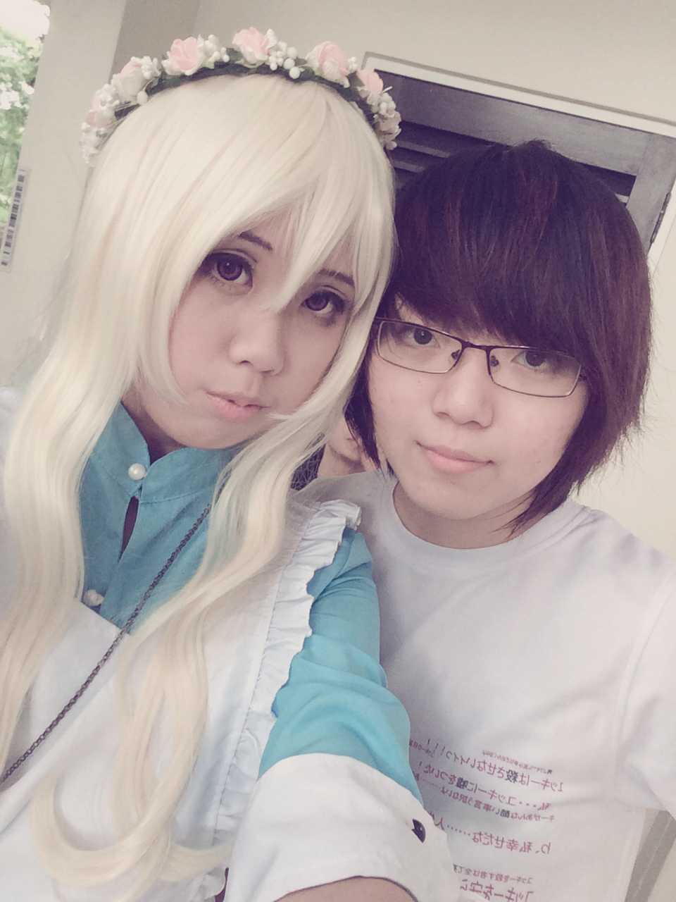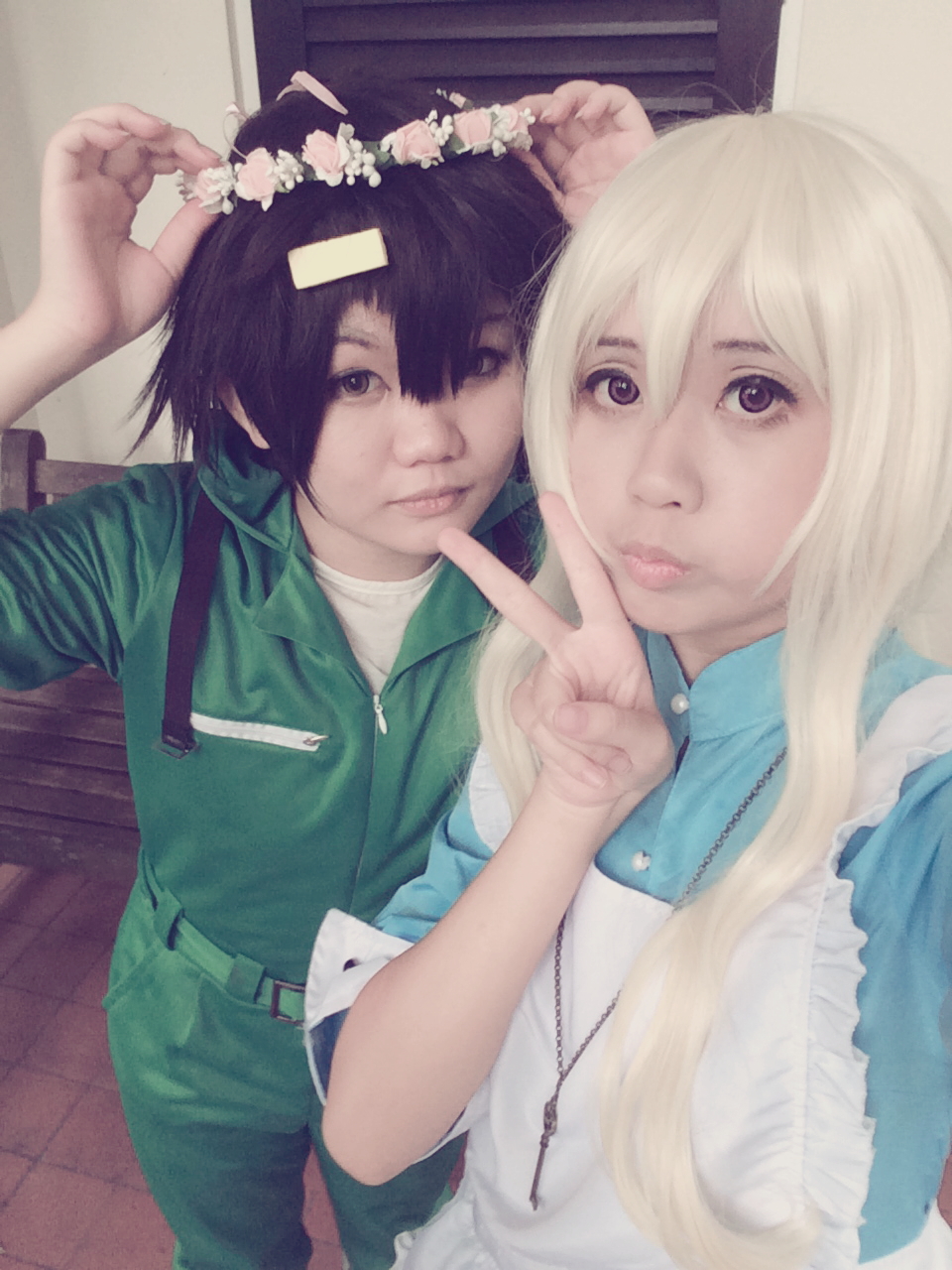 我和瀨戶只好默默地把costume穿好回去我們放包包的地點戴wig。